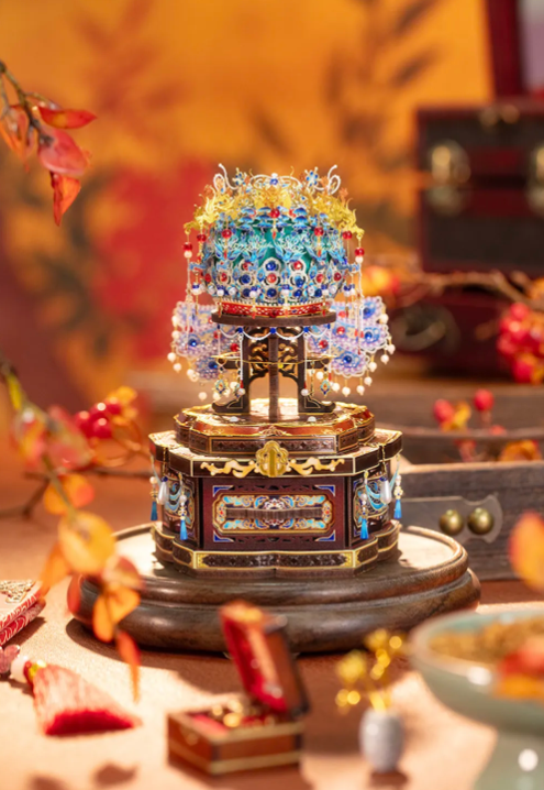 在廖飛看來,好的文創(chuàng)不僅要呈現(xiàn)文物,更要提取其文化內(nèi)涵、工藝水準(zhǔn),以匠人精神致敬匠人精神。為了打造立體感,研發(fā)團(tuán)隊(duì)突破了傳統(tǒng)冰箱貼一體壓鑄成型的常規(guī)工藝。木質(zhì)版本由3片木板粘連而成,每次手工粘貼時(shí)都要等干透,“干燥不夠就容易開膠”。粘好之后,還要給粘連處刷一層顏色,蓋住原有的木紋。為了還原鳳冠金龍奔騰翠云之上、翠鳳翱翔珠寶花叢之中的生動(dòng)美感,所有串珠均靠人工穿綴。