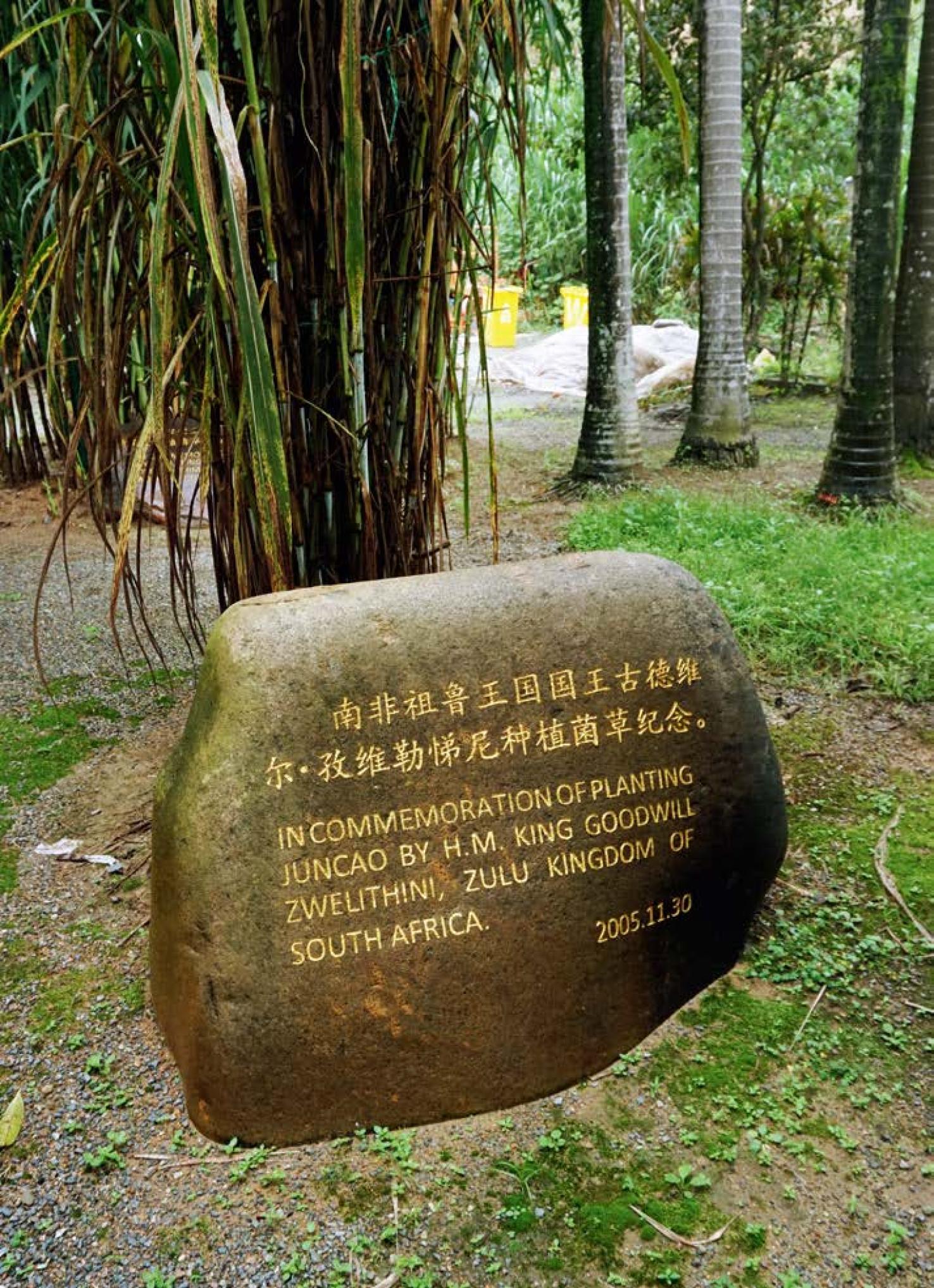 南非祖魯王國時任國王在福建農(nóng)林大學(xué)國家菌草工程技術(shù)研究中心留下紀(jì)念石。