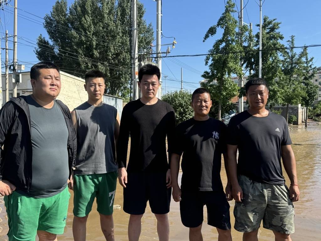 7月28日,王天宇(左一)等參與救援者合照。受訪者供圖