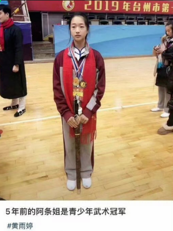 臺州姑娘黃雨婷于2006年出生在黃巖區上鄭鄉,2016年父母送她加入臺州市武術協會少林分會,師從穆宗堂屠靈斌師傅學習少林功夫刀槍劍棍拳術,基本功扎實……學會了很多種武術套路,多次參加臺州國際武術節獲得多枚金牌,經常上臺表演,為日后的氣步槍比賽獲獎打下了良好的體格基礎。她入選黃巖少體校射擊步槍隊后,邊學武術,邊練槍術。黃雨婷的協調性和穩定性非常好,進步很快,近幾年在省運會和國家級賽事多次獲獎。