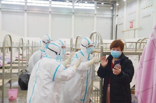 患者的愛人發來視頻電話感謝王敏和隊友